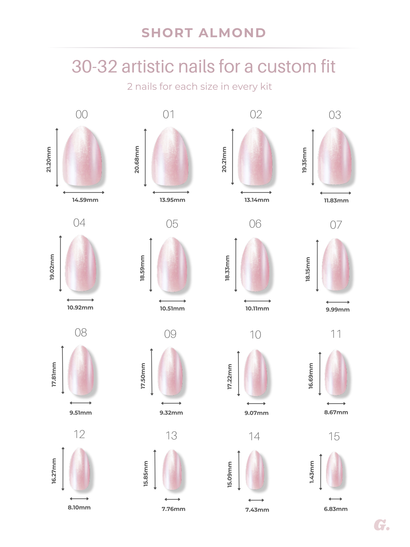 • 30 nails (15 inclusive sizes, 30 pieces)