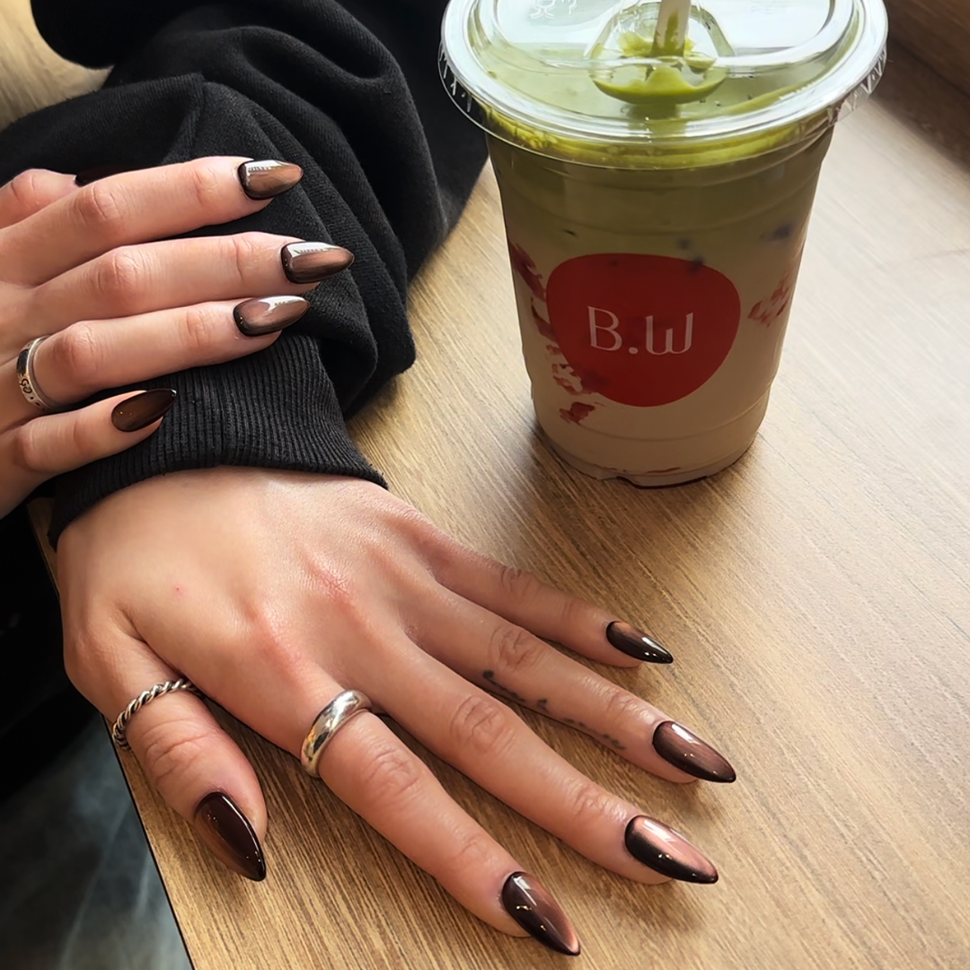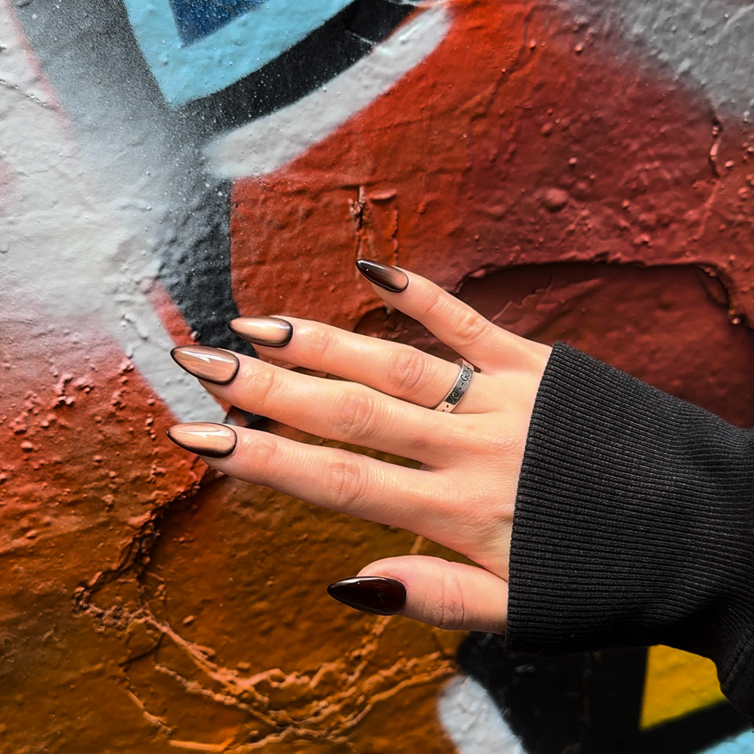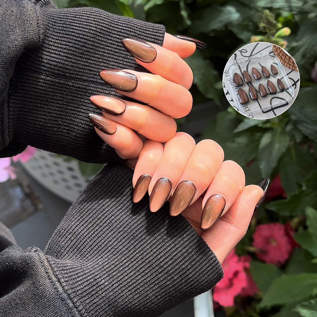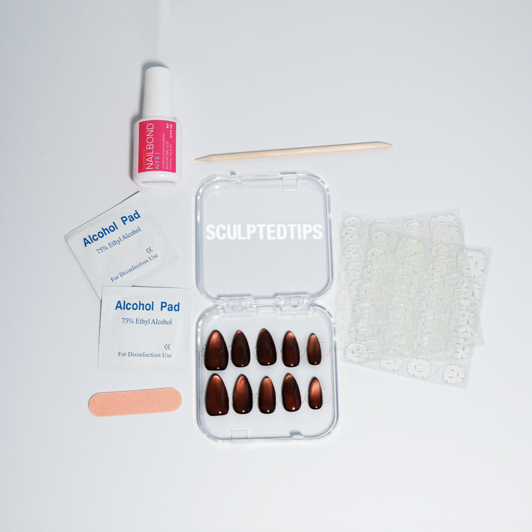 Apply an even layer of glue to natural nails and back of Glamnetic nails.